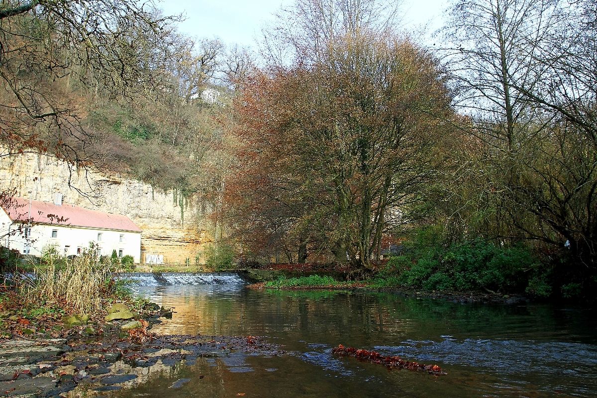Vir eescht kommen ech an den Gronn, bekannt Bréck am Gronn, e belieft Photomotiv, also wat ass mer iwwreg bliwwen , hunn natierlech eng Photo gemat.Dann weider zu Fouss Richtung Polfermillen, wou awer net vill ze kucken ass. Dann no e puer Kilometer laanscht déi al Kofferfabrik, wou fréier eng Géisserei war, haut e Service vun der Gemeng dran ass