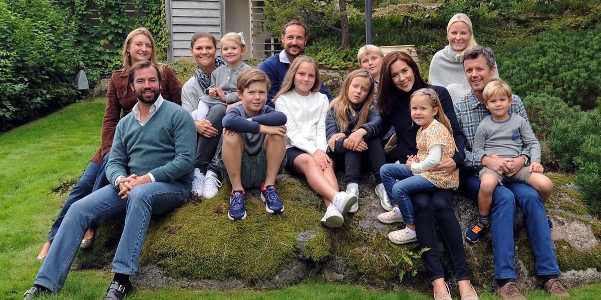 In der 2. Reihe (von links nach rechts) : Erbgroßherzogin Stéphanie, Kronprinzessin Victoria von Schweden, Prinzessin Estelle von Schweden, Kronprinz Haakon von Norwegen, Prinz Sverre Magnus von Norwegen und Kronprinzessin Mette-Marit von Norwegen.