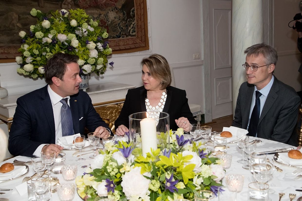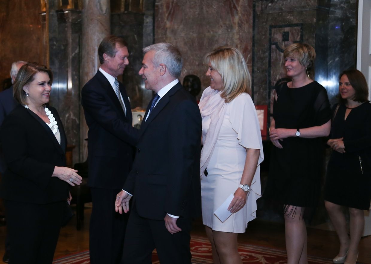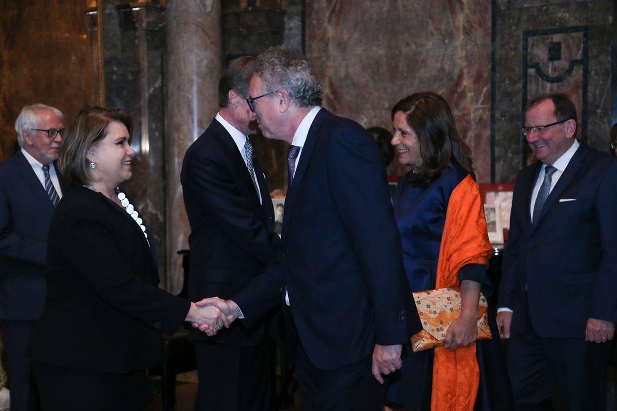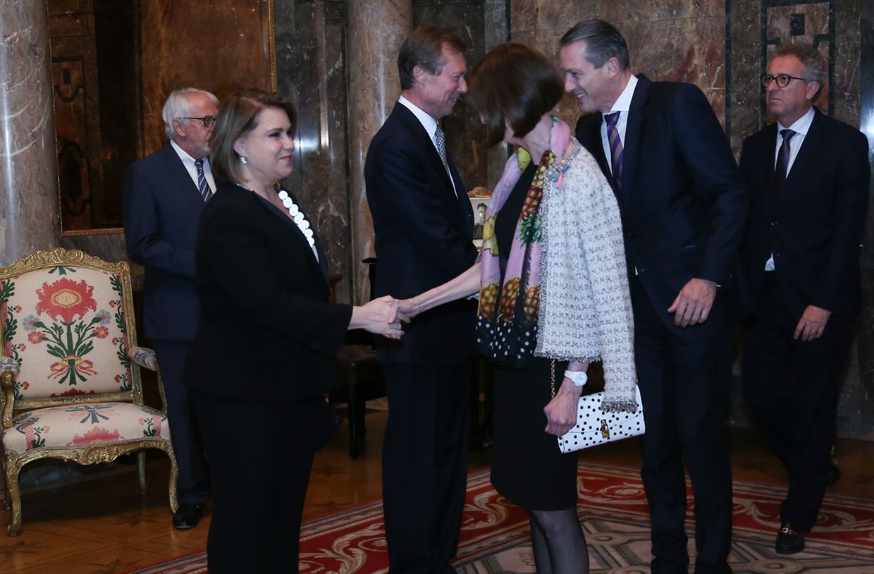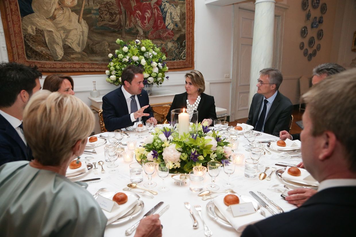 (mij) - Am Mittwochabend begrüßten Großherzog Henri und Großherzogin Maria Teresa die Minister und Staatssekretäre auf Schloss Berg, um sich mit Ihnen im Rahmen eines institutionellen Essens über Land und Politik auszutauschen.