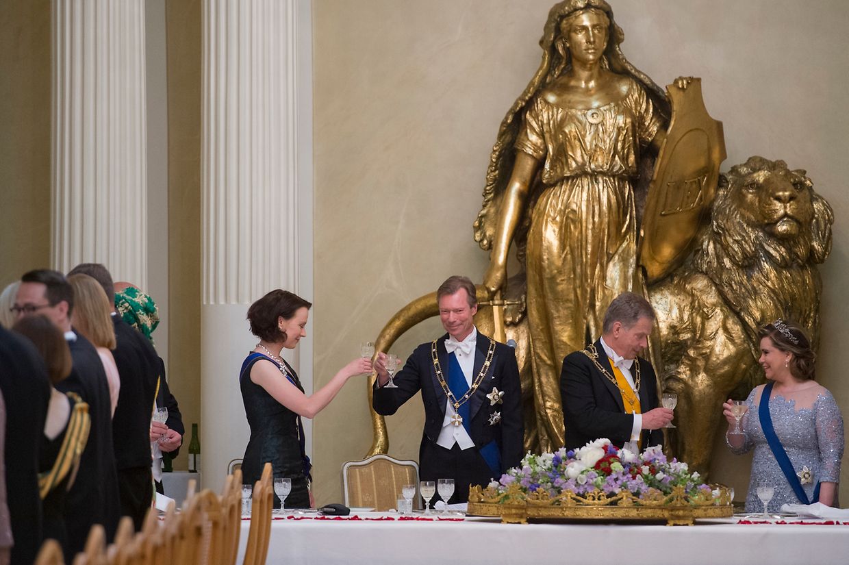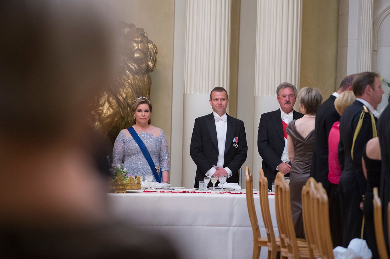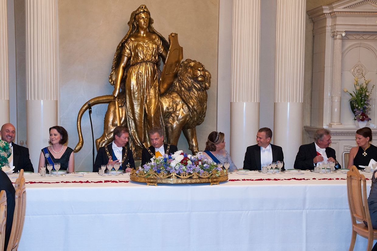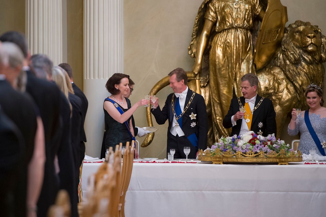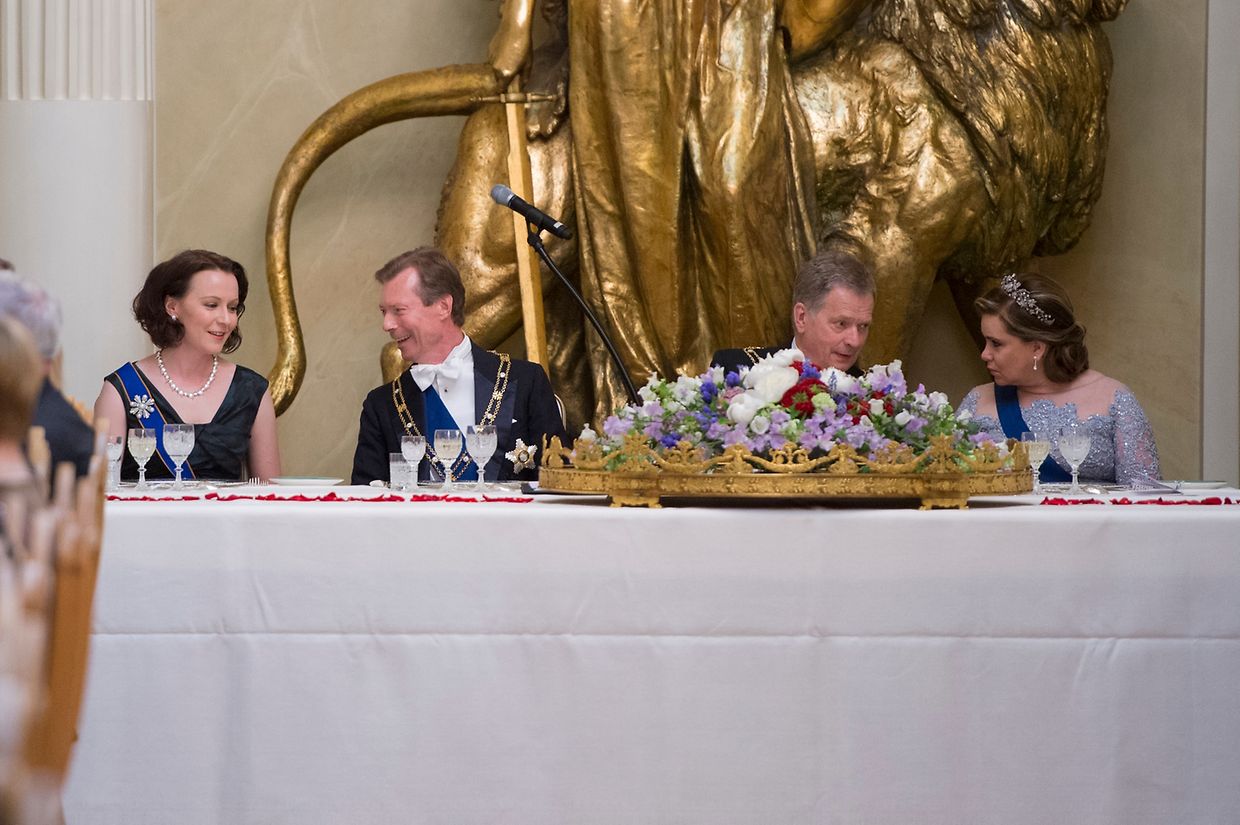 Den Abschluss des ersten Tages bildete ein Galadinner. Das großherzogliche Paar unterhielt sich vor dem Essen mit dem finnischen Präsidenten und seiner Gattin.