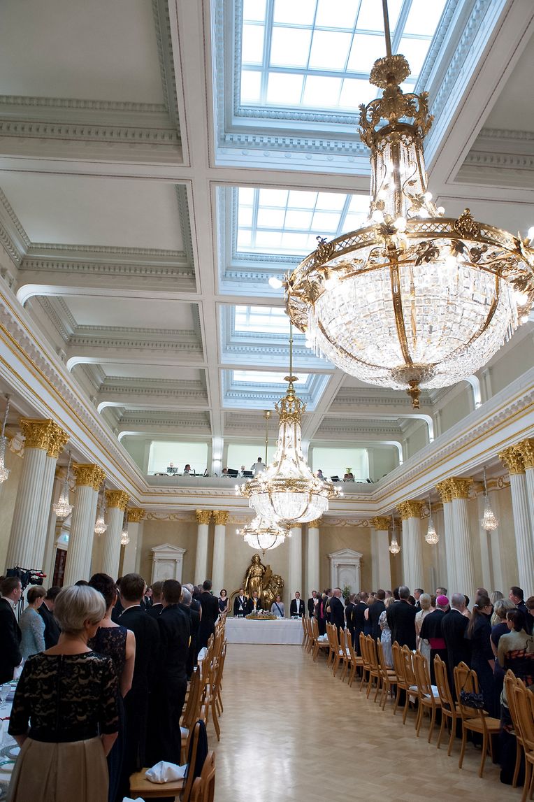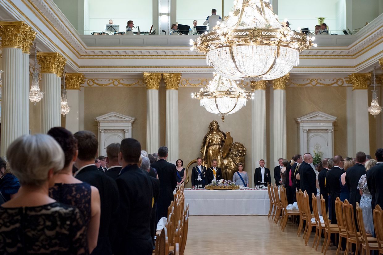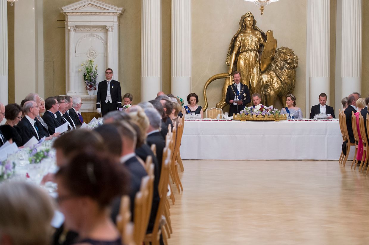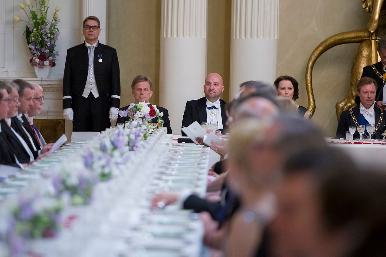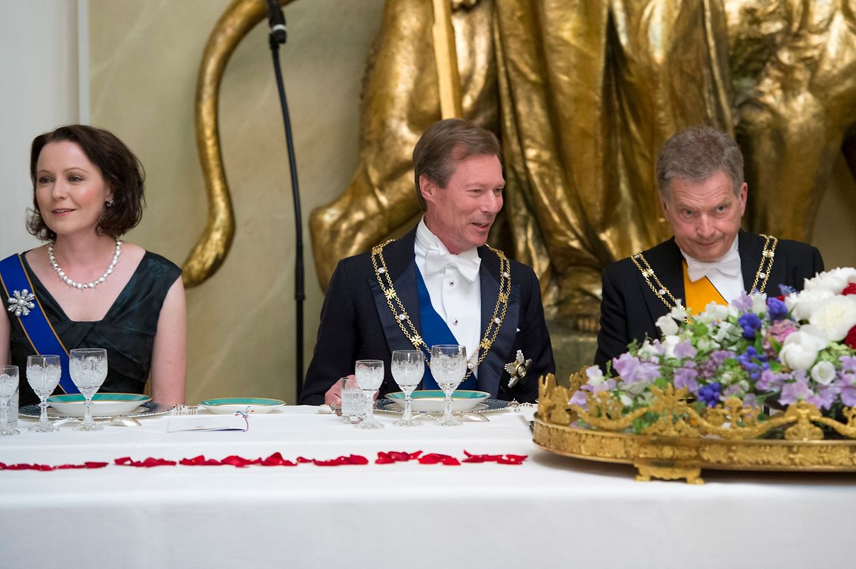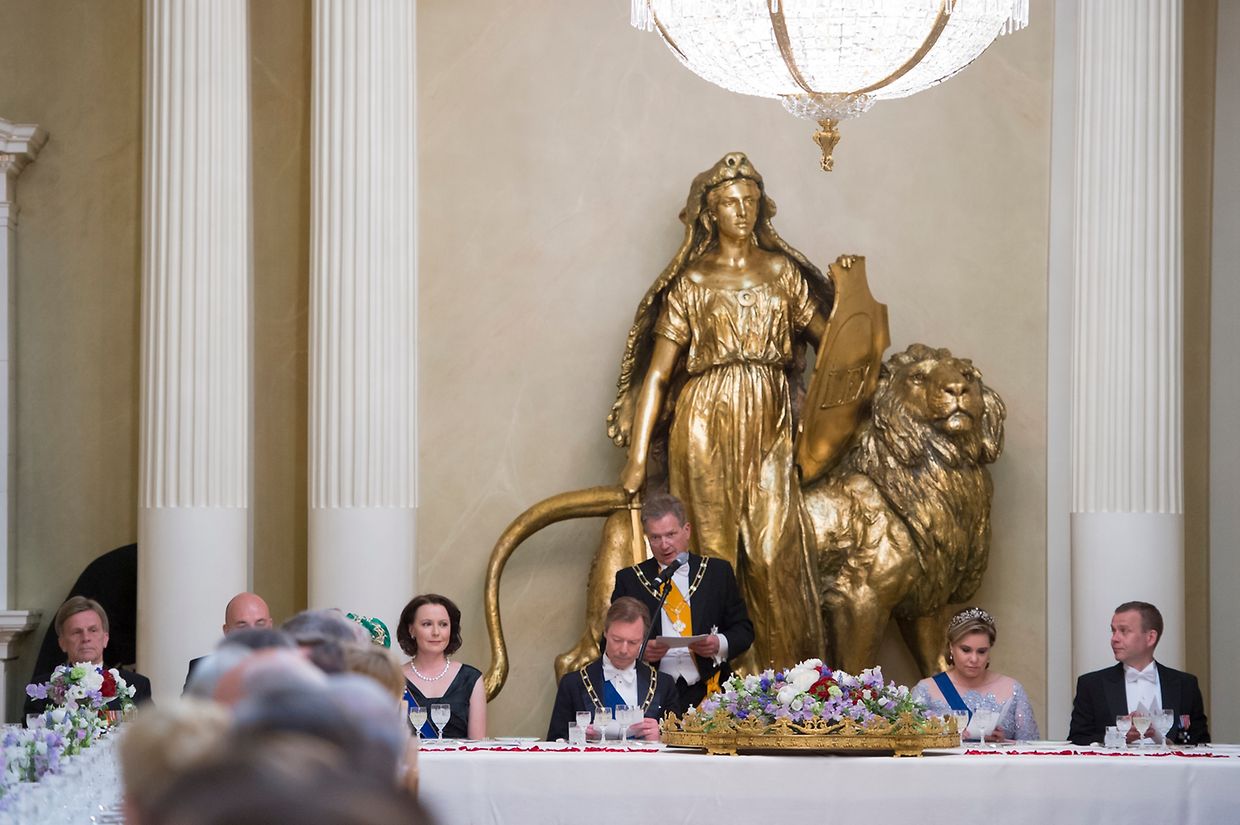 Den Abschluss des ersten Tages bildete ein Galadinner. Das großherzogliche Paar unterhielt sich vor dem Essen mit dem finnischen Präsidenten und seiner Gattin.