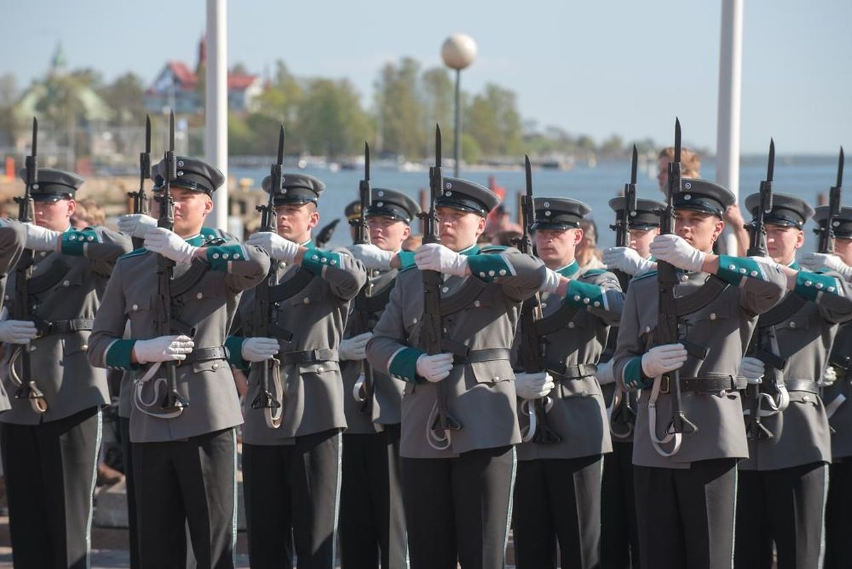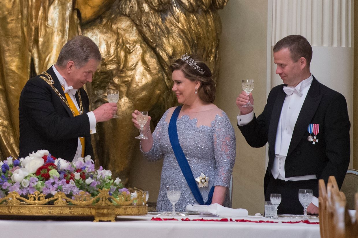 Bei der offiziellen Begrüßung durch Präsident Sauli Niinistö in Helsinki wenig später herrschte strahlender Sonnenschein.