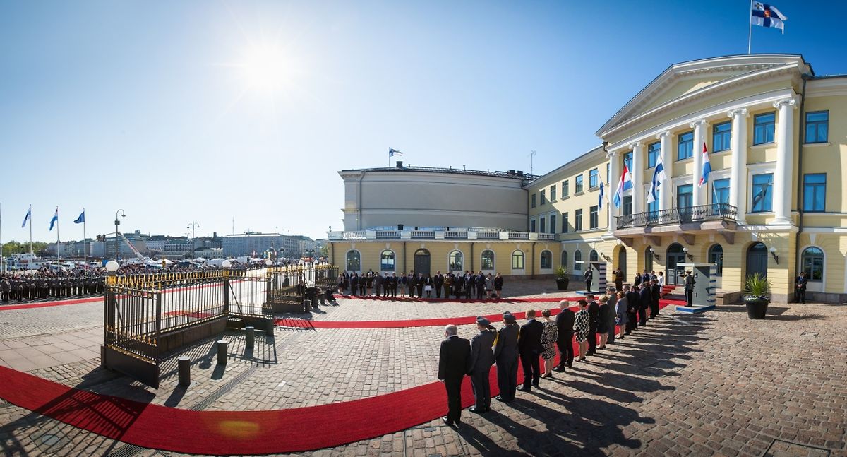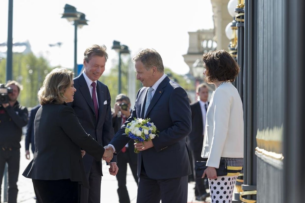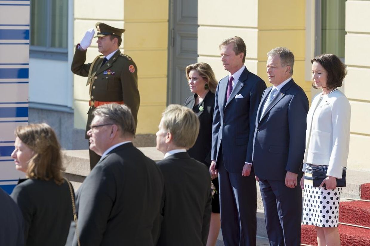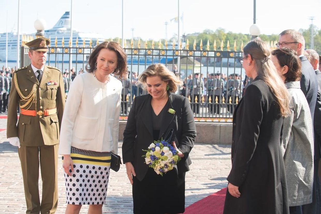 Die offizielle Willkommenszeremonie fand wenig später im Präsidentenpalast statt, wo das großherzogliche Paar von Staatspräsident Sauli Niinistö und seiner Frau Jenni Haukio empfangen wurde.