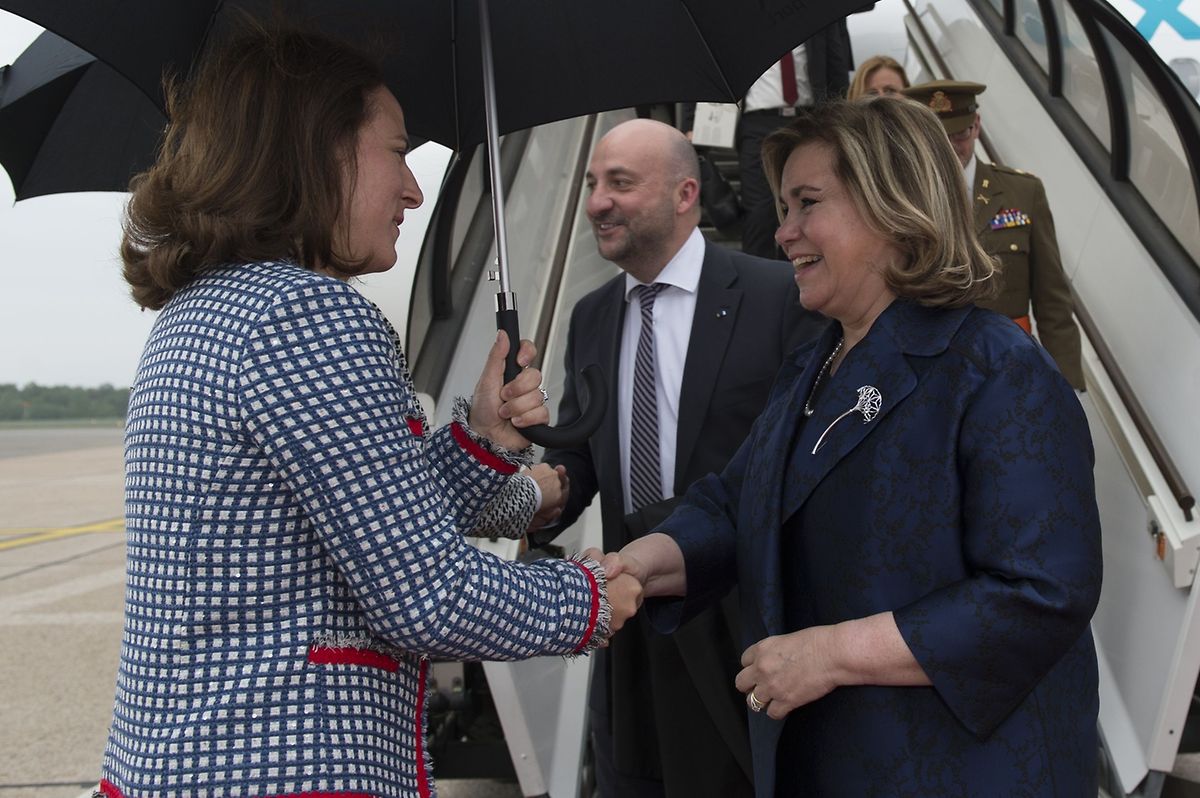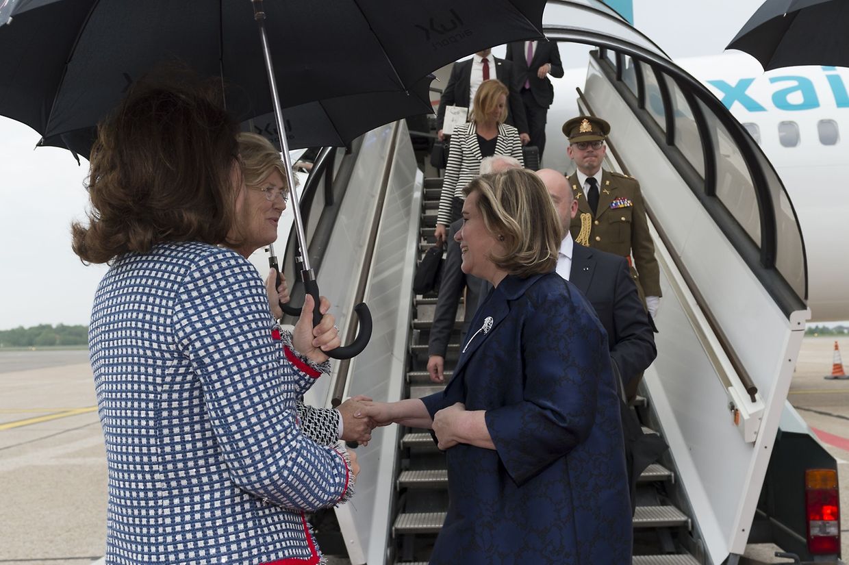 Ankunft in Luxemburg: Familienministerin Corinne Cahen begrüßt Großherzogin Maria Teresa und Wirtschaftsminister Etienne Schneider.