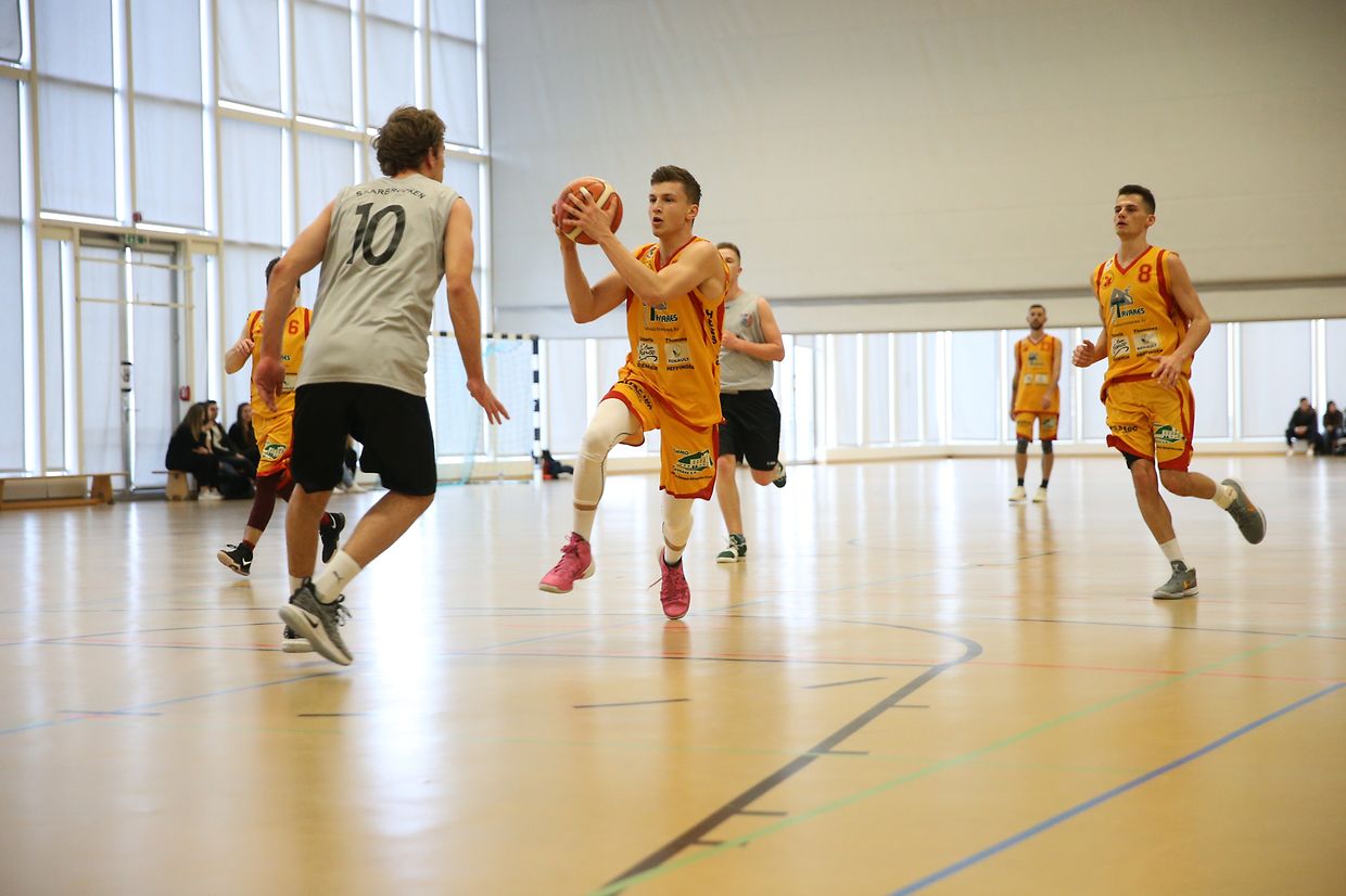 Die Trierer Basketballer (gelb) setzten sich auf dem Weg zum Titel auch gegen Saarbrücken durch.