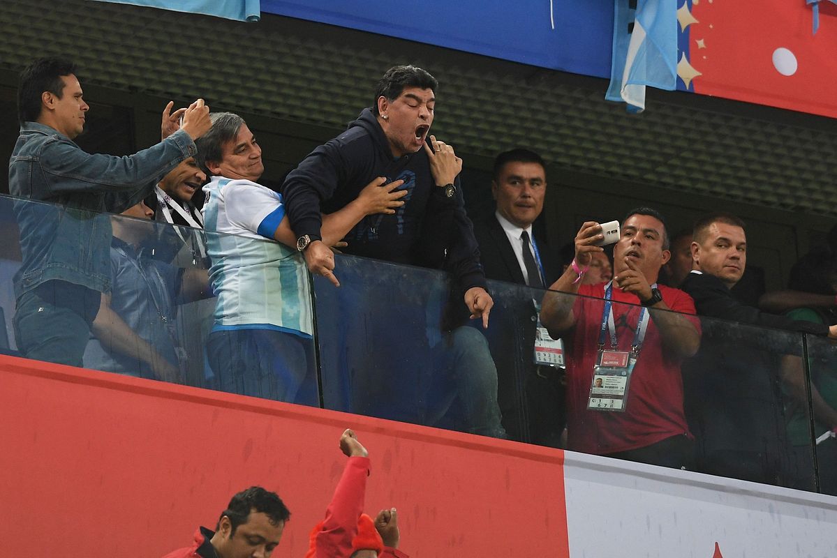 Was war denn mit dem los? Beim WM-Spiel zwischen Argentinien und Nigeria bot Ex-Fußballer Diego Maradona seine ganz eigene Show. Mit normalen Mitteln ging das wohl nicht zu.