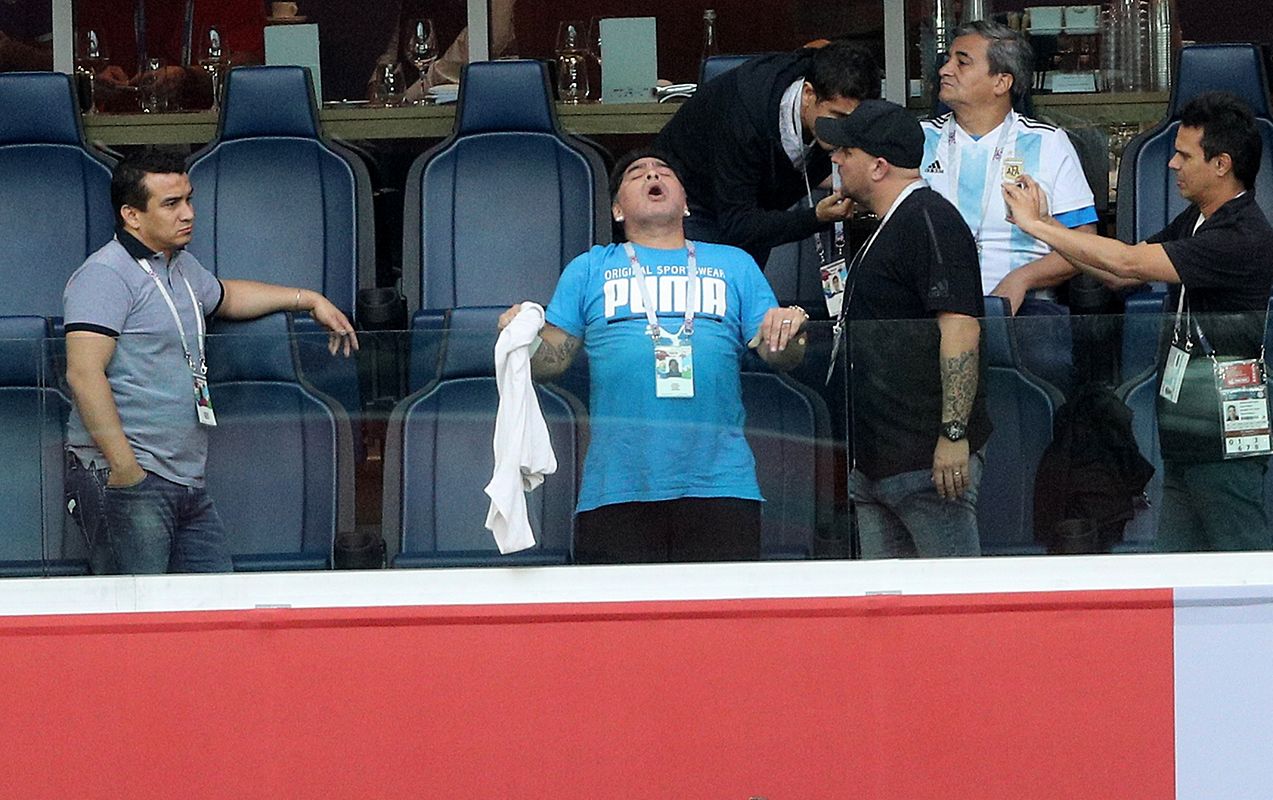 In der Halbzeit habe ihn der Nacken stark geschmerzt und er habe einen Kreislaufzusammenbruch erlitten, daher habe er sich von einem Arzt durchchecken lassen. "Er empfahl mir, vor der zweiten Halbzeit nach Hause zu gehen, aber ich wollte bleiben", so Maradona. Er hätte aber nie eingeliefert werden müssen. Medien hatten zuvor berichtet, dass Maradona im Spielort St. Petersburg kurzzeitig ein Krankenhaus aufsuchen musste. Während des Spiels hatte der einstige Weltstar hochemotional die argentinische Elf auf der Tribüne angefeuert.