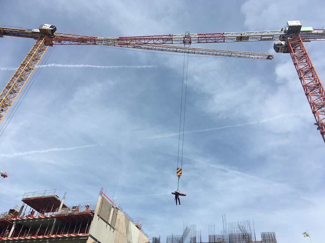 Un accident de travail a eu lieu sur le chantier Royal Hamilius vendredi. Un ouvrier blessé a dû être secouru à l'aide d'une grue.