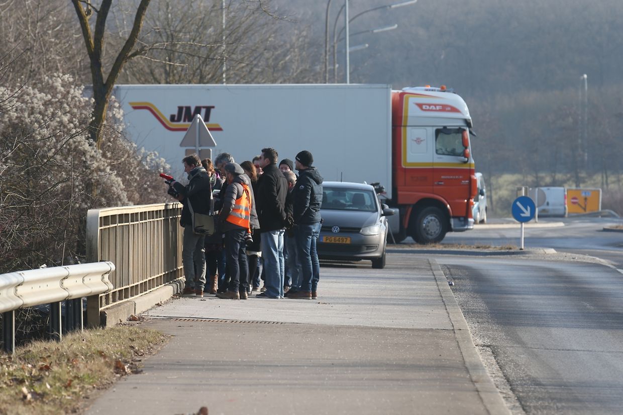 Deux journalistes de l'édition francophone de wort.lu se sont rendues sur les lieux de l'accident dès 9h20. Un hélicoptère survolait la zone, tandis que la police avait barré l'ensemble des accès routiers vers les voies ferrées. Seuls les services de secours pouvaient passer.