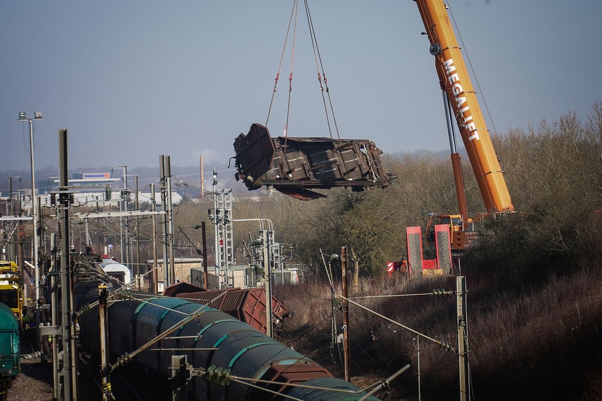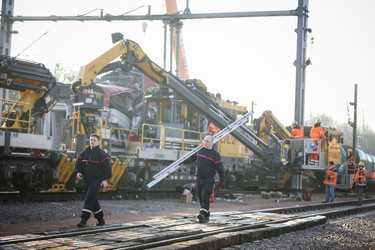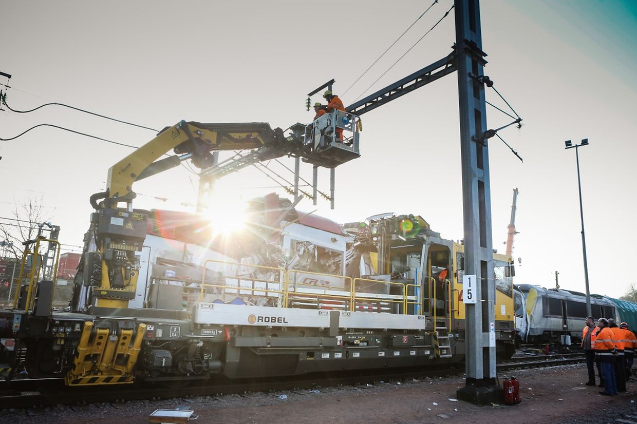 A Bettembourg, le déblaiement continue: ce mercredi matin, une grue a été aménagée sur les lieux de l'accident. Elle permet de soulever la locomotive électrique de 90 tonnes qui avait complètement percé le wagon de tête qui venait en sens inverse.