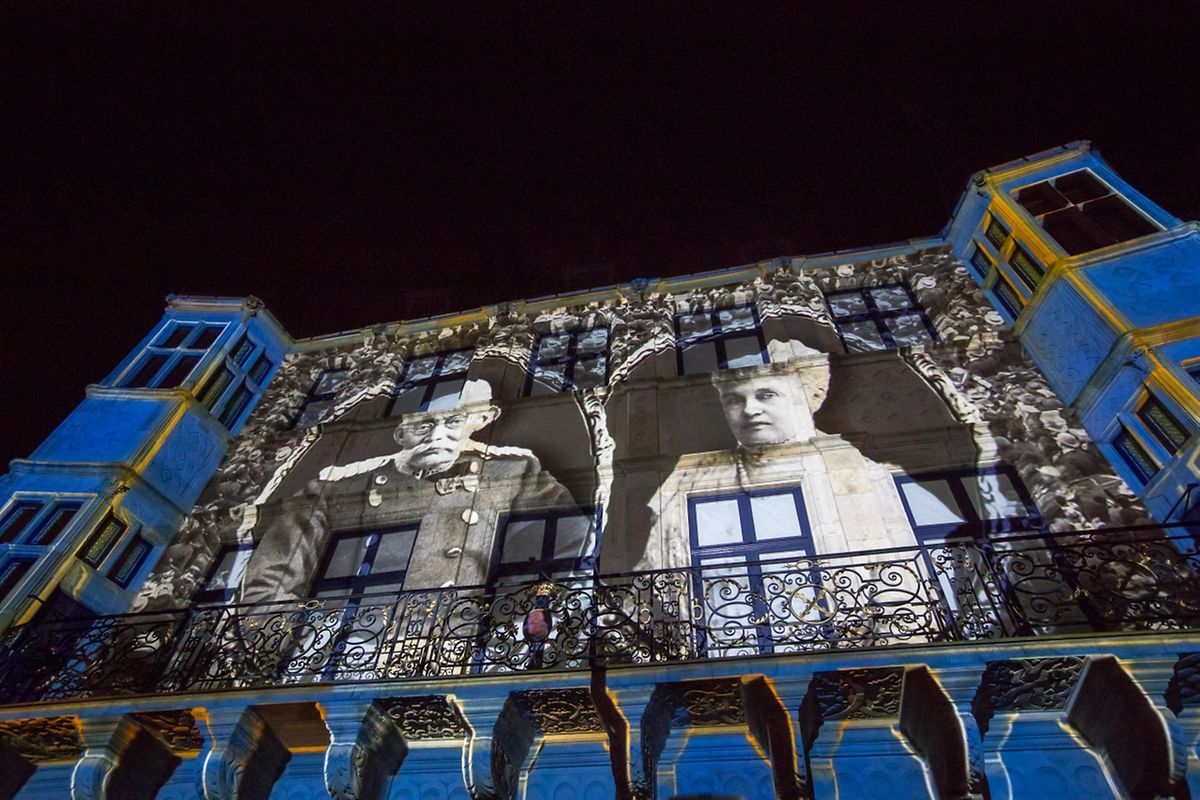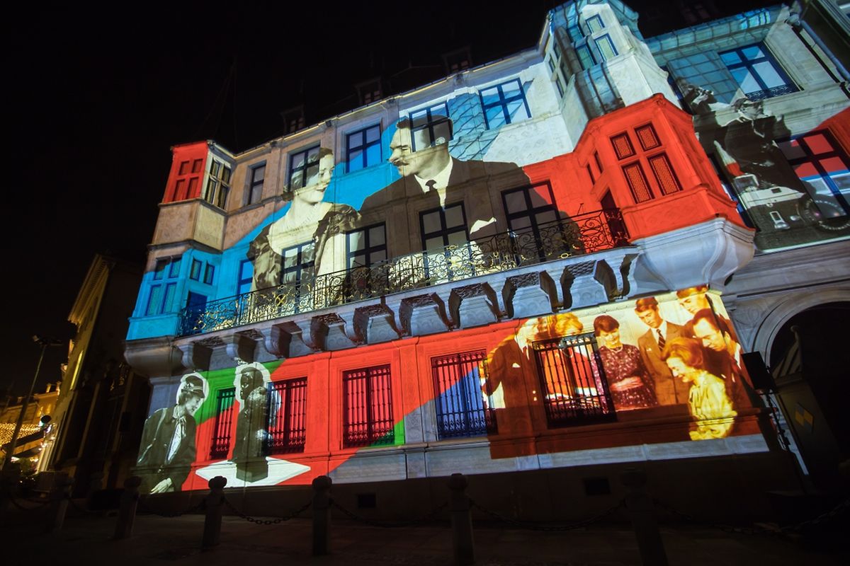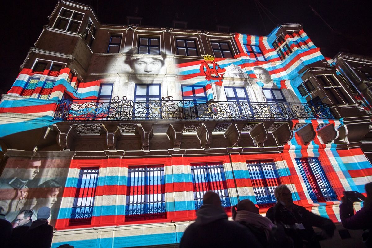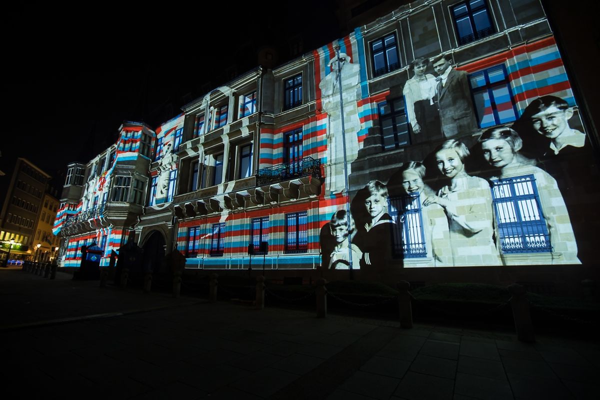 Sur la façade du palais grand-ducal, des images géantes ont illustré les 125 ans de la dynastie Luxembourg-Nassau. On y a vu défiler la vie des six souverains luxembourgeois et de leurs familles: les grands-ducs Adolphe et Guillaume, la grande-duchesse Marie-Adélaïde, la grande-duchesse Charlotte, le grand-duc Jean et l'actuel grand-duc Henri.