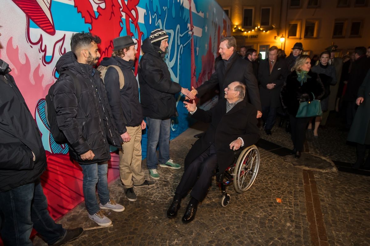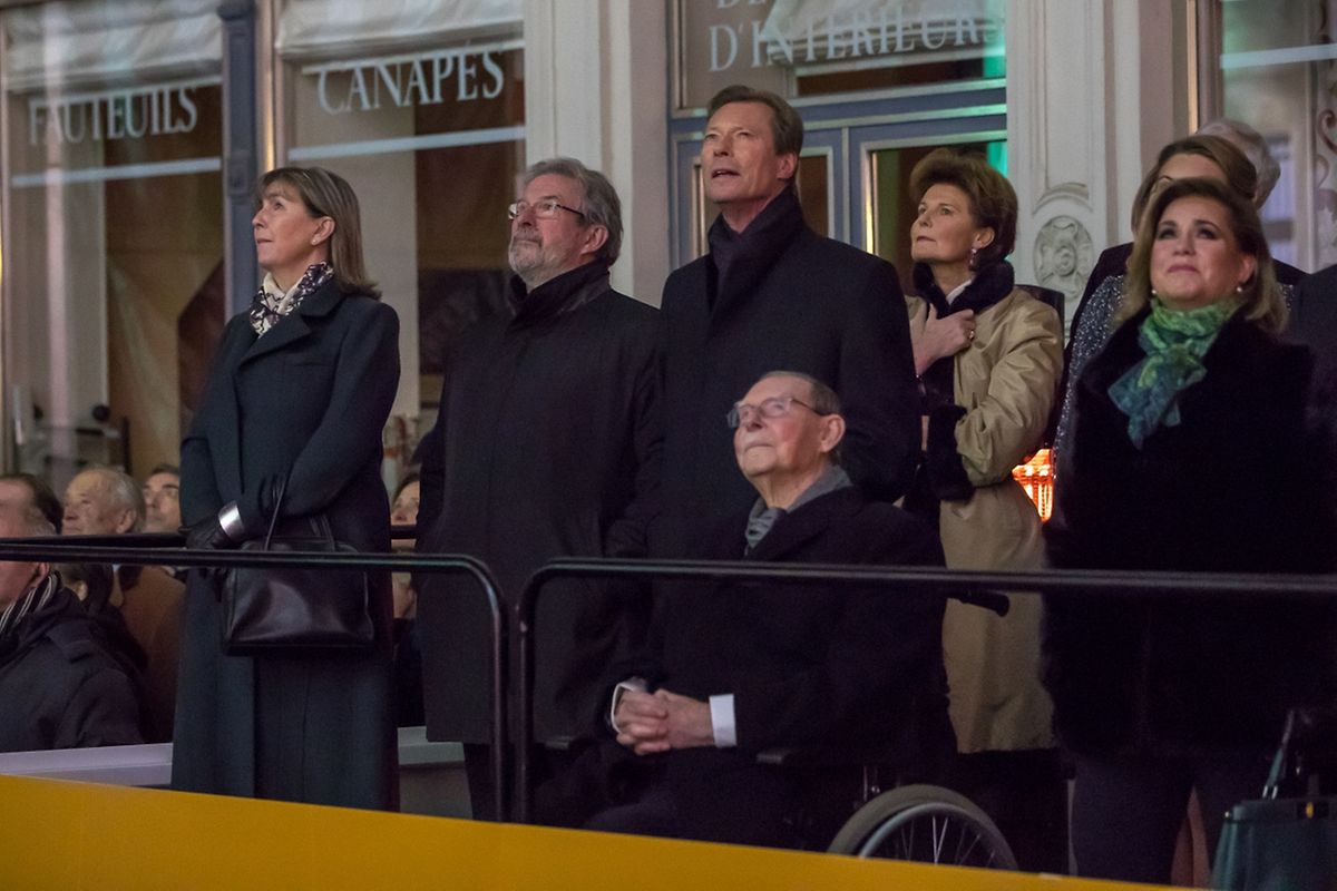 C'est le Grand-Duc et la Grande-Duchesse qui ont lancé officiellement le spectacle à 19h45. De nombreux membres de la famille grand-ducale, mais aussi la bourgmestre de Luxembourg Lydie Polfer et le Premier ministre Xavier Bettel étaient présents.