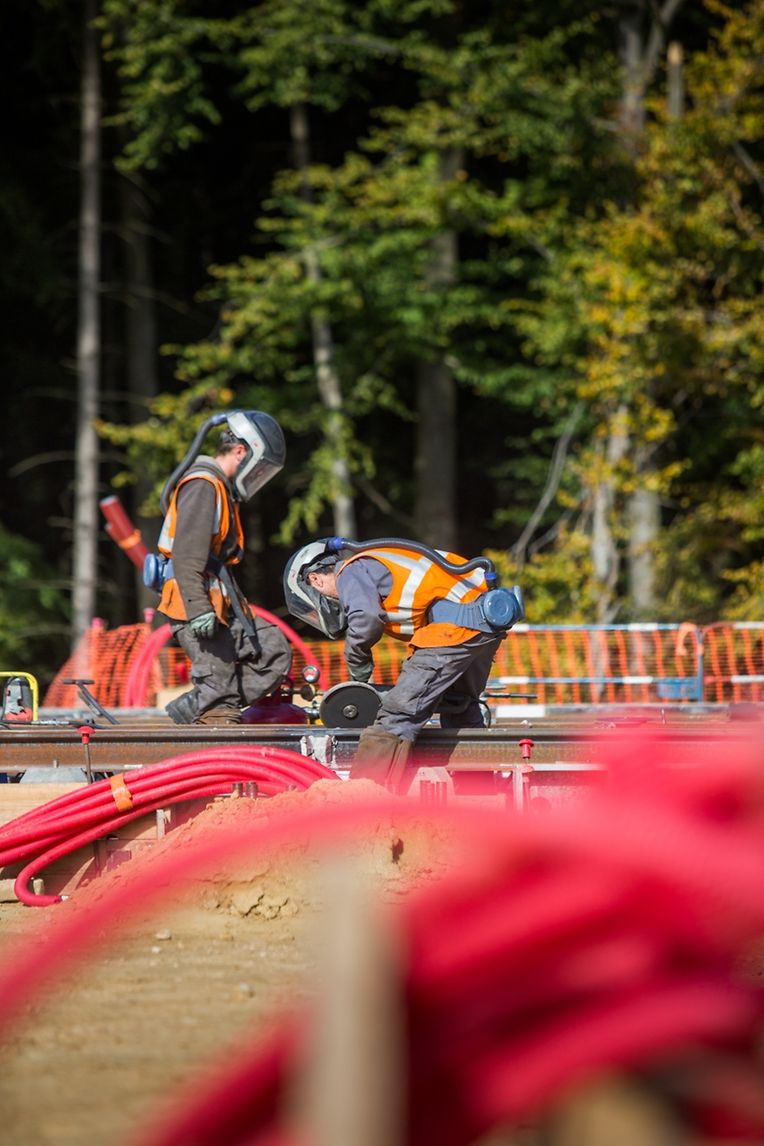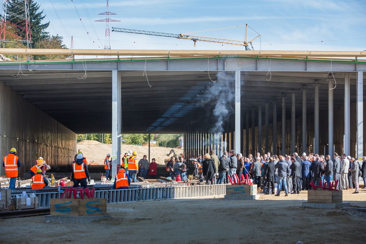 Un an après la pose de la première pierre, le ministre du Développement durable et des Infrastructures, François Bausch, et la première échevine de la Ville de Luxembourg, Sam Tanson, étaient de retour sur le site ce jeudi matin pour une petite visite de chantier.