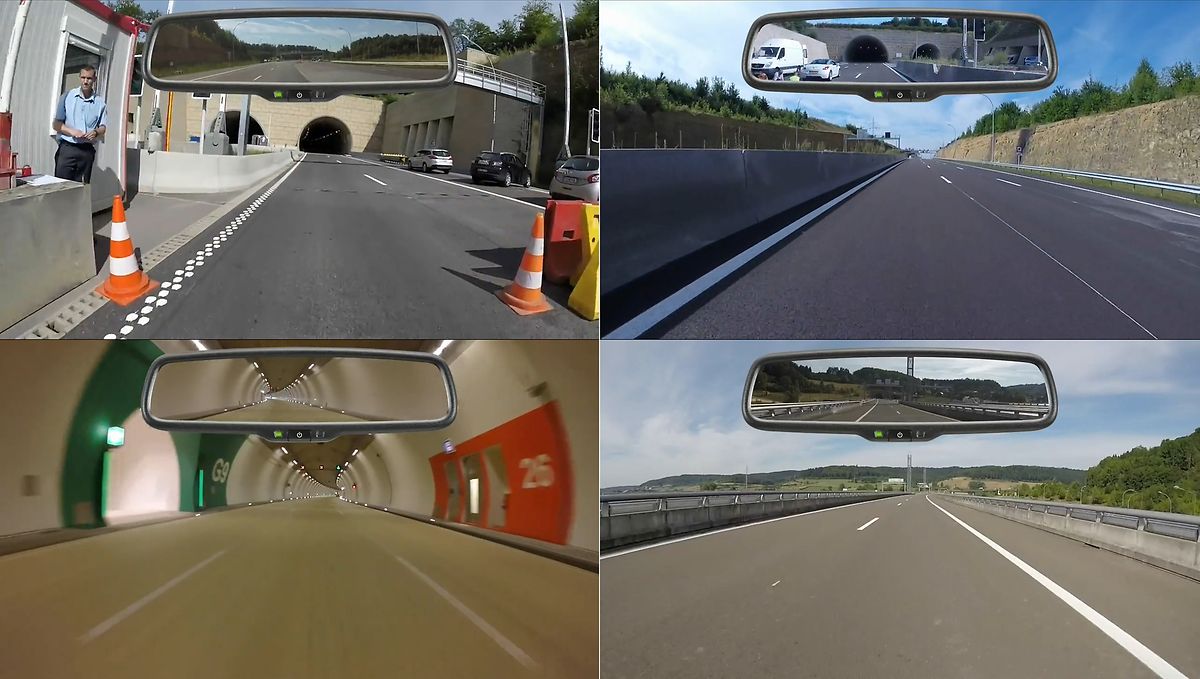 Dans la vidéo ci-dessus, la voiture commence son trajet à proximité du plateau du Kirchberg, juste avant l'entrée dans le tunnel Stafleter (1850 m de long). Le véhicule en sort deux minutes plus tard, avant d'entrer dans le second tunnel (Grouft, 2950 m de long). Aux environs de 6 minutes 30 secondes, et après 8,3 km, la voiture fait demi-tour et parcourt la route en empruntant les tubes réservés à l'autre sens de circulation.