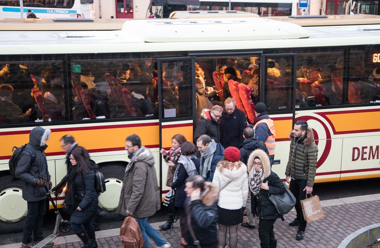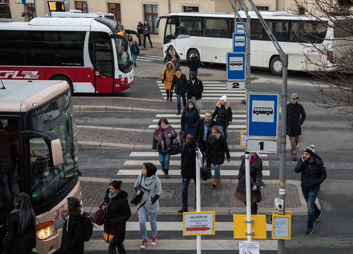En moins de cinq minutes, nous sommes à bord d'un bus direction la capitale. Il faudra moins de vingt minutes pour rejoindre la gare de Luxembourg.