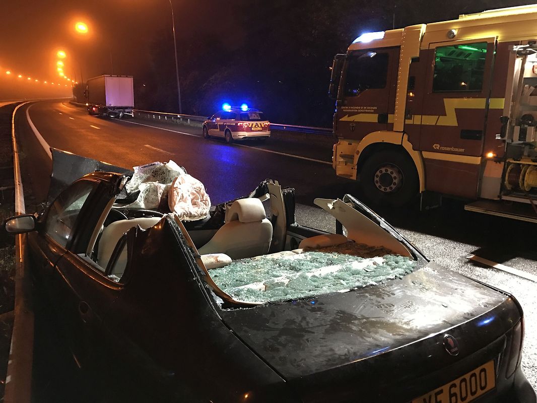 Sur l'A1/Flaxweiler: Une voiture s'encastre sous un camion