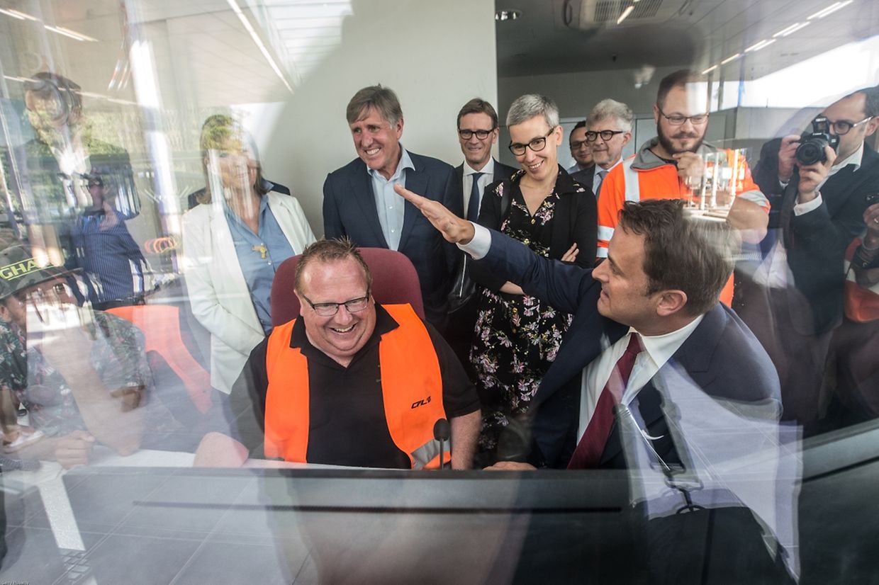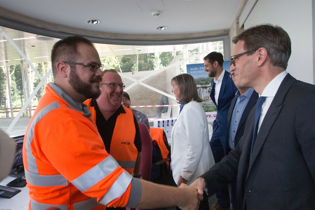 Vendredi, le Premier ministre a passé la matinée au Kirchberg, sur le site du funiculaire puis au nouveau centre de maintenance du tram à l'autre bout du plateau. Nous y étions.