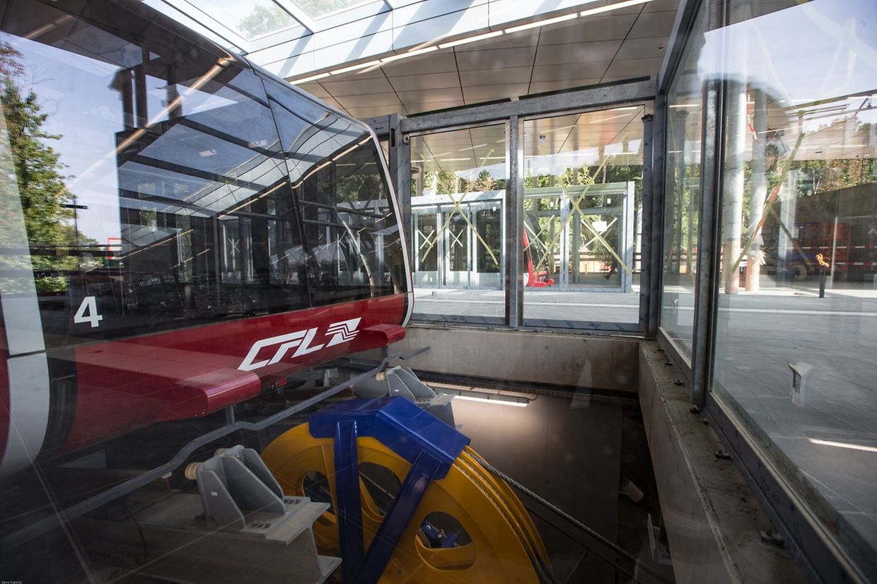 Dans huit mois - le 10 décembre 2017 exactement - les premiers usagers prendront le funiculaire pour «grimper» du pied du Pont Rouge au plateau du Kirchberg en 63 secondes. Ils pourront même déjà prendre le Tram. Les quatre cabines rouges du funiculaire sont déjà sur les rails! Visitez-les en avant-première.