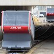 La première cabine du funiculaire -encore enveloppée de sa bâche de protection- est déjà sur ses rails. Dans moins de neuf mois, le funiculaire sera opérationnel sous le Pont Rouge et emmènera en 63 secondes les passagers des CFL du Pfaffentahl au Plateau du Kirchberg pour y prendre ou non le Tram.