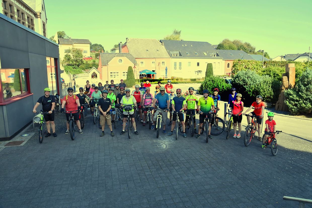 Ell: Dat schéint Hierschtwieder hat vill fervent Vëlofuerer aus der Gemeng Ell derzou bewegt fir dem Opruff vum Réidener Mobilitéitsatelier och dest Joer am Kader vun der Aktioun „Tour du Duerf 2021“ ,nozekommen. Nom klenge Briefing, huet de Laurent Schaus d’Strëck vu ronn 18 Kilometer duerch d’Stroosen vun der Gemeng Ell mat engem klengen Deel am belgischen Grenzgebiet, kuerz virgestallt wou Grouss a Kleng sech duerno mat Start beim Gemengenhaus op de Wee geemet huet. Zum Schluss vun dësem gemittlechen Naturtour, huet de Buergermeeschter Armand Schuh bei enger klenger Agap am Bongert allen Bedeelegten säi Merci ausgedrëckt, déi sech nom Registréieren vun de Gesamtkilometer och hir Virschléi an eventuell Verbesserungen konnten matdeelen. (CR) (Foto: Charles Reiser)