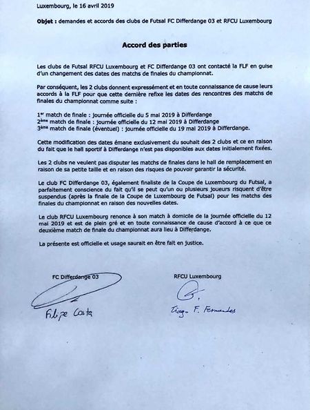 Outre le calendrier, les deux parties ont également convenu que les différents matches se disputeront au centre sportif d'Oberkorn. L'idée est de créer un événement et de permettre à tous les suiveurs du futsal d'assister à ce rendez-vous dans un seul et même endroit.