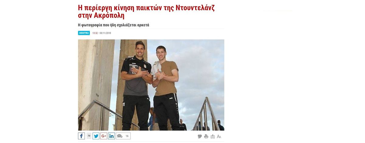 Ou plus précisément l'avant-match. Patrick Stumpf et Leon Jensen ne se sont pas distingués de la meilleure des manières. Alors que la formation du F91 visitait le site de l'Acropole mercredi après-midi, les deux joueurs allemands ont fait le geste de l'aigle à deux têtes du drapeau albanais. La photo publiée jeudi sur les réseaux sociaux du site internet du club luxembourgeois s'est très vite retrouvée sur les sites d'information grecs et a suscité une vive polémique. Des menaces ont même été proférées par des fans grecs à l'encontre des deux joueurs. Le président Romain Schumacher a tenu à préciser qu'il avait parlé aux joueurs et "que ce geste avait été fait sans aucune déclaration politique". La photo a finalement été retirée de la page Facebook du club de la Forge du Sud mais le mal était fait. Pour rappel, la Grèce et l'Albanie ont des relations particulièrement tendues. On se souviendra que lors de la Coupe du monde en Russie, les Suisses Granit Xhaka et Xherdan Shaqiri avaient été punis pour avoir effectué ce geste.