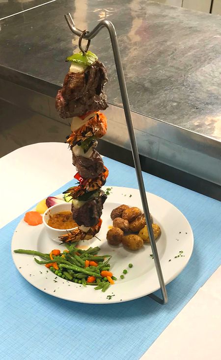 Imperdíveis são as sugestões diárias do chefe, de destacar o bife de atum grelhado, as amêijoas à casa, a espetada de tamboril e gambas, a espetada de carne e gambas, a cataplana de marisco e o arroz de marisco (para 2 pessoas), entre outras.