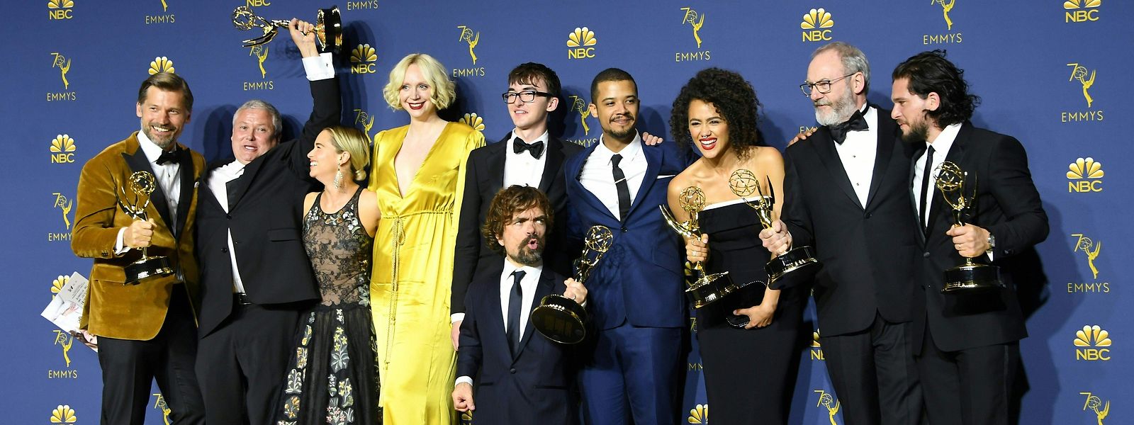 Após a ausência do evento em 2017, pelo atraso na sétima temporada, a série da HBO regressou em força e conquistou o seu terceiro Emmy na categoria de melhor série dramática, depois das vitórias em 2015 e 2016. A produção televisiva, criada a partir dos livros de George R. R. Martin, liderava as nomeações, nomeadamente para melhor série dramática e nas áreas da representação. Nos Emmys técnicos, já tinha conquistado sete distinções. "O show não existiria sem a loucura mágica de George R. Martin", admitiu David Benioff, um dos criadores da série com D.B. Weiss, que elogiou o empenho de todo o staff e produção.