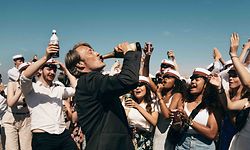 A cena central do filme que venceu o festival de Cannes de 2017 passa-se numa sala chique, repleta de milionários amantes de belas artes que se deliciam com um jantar de gala que, de repente, é animado pela prestação de um artista que imita um macaco.