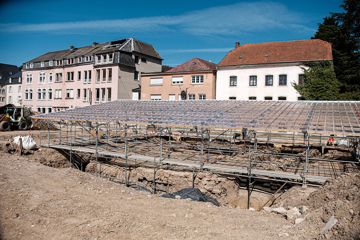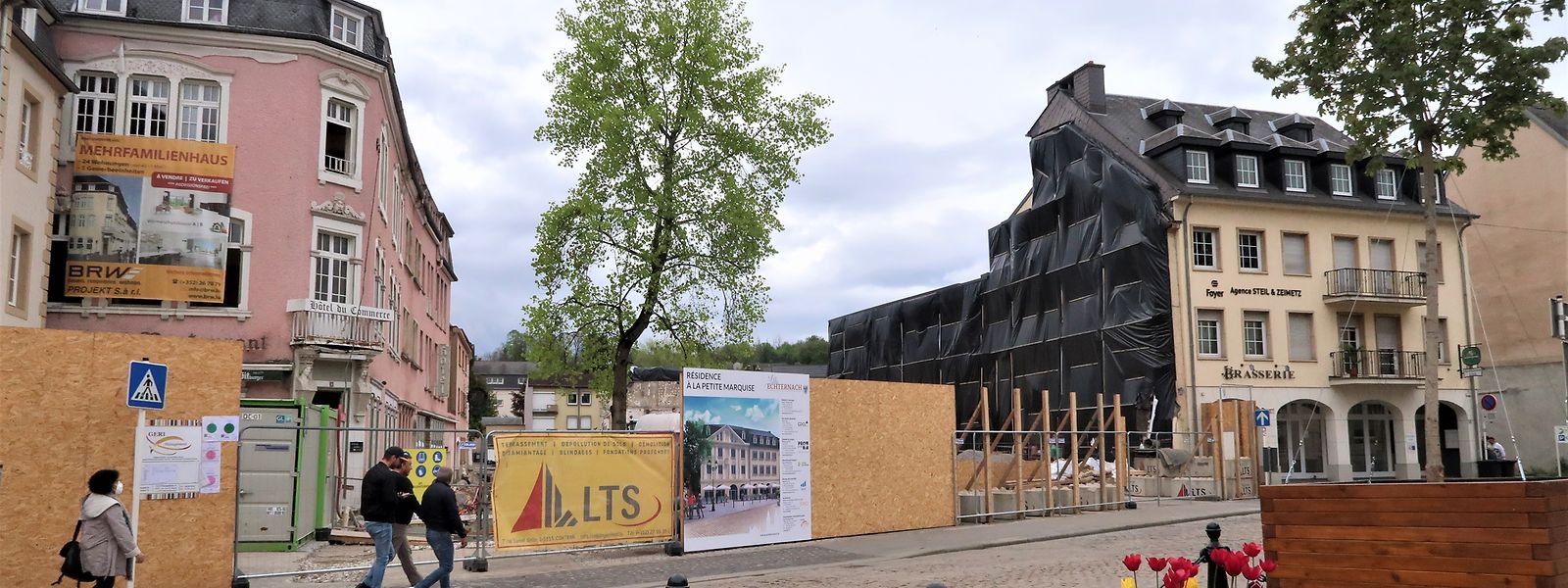 As descobertas arqueológicas recentes em Echternach pararam o projeto imobiliário da praça do Mercado que visa dar uma nova vida ao local do antigo hotel e restaurante "À la Petite Marquise". O projeto de 1.000 m² financiado pela comuna prevê a construção de um prédio com cerca de 20 apartamentos, lojas e restaurantes e um parque de estacionamento subterrâneo de dois níveis, para 67 viaturas.