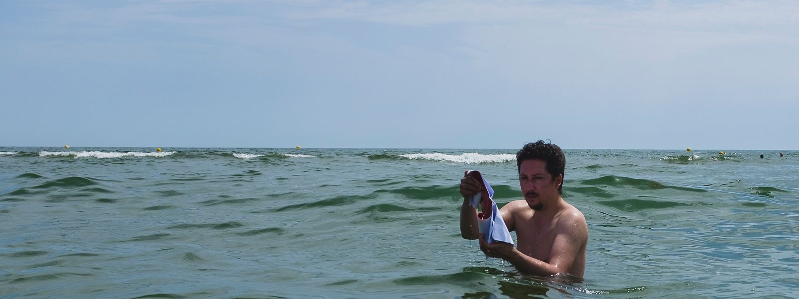 Quando este artigo for publicado, esta quarta-feira, Marco Godinho terá acabado de chegar ao Canadá, para inaugurar mais uma exposição, depois de ter apresentado em Bruxelas, na sexta-feira passada, o projeto “Written by Water” (“Escrito pela Água”). Para o concretizar, o português mergulhou, literalmente, em vários pontos do Mediterrâneo, de Marselha a Lampedusa, passando por Gibraltar, Nápoles, Nice, Palermo ou uma praia perto de Arles, onde Vincent van Gogh pintou alguns dos seus mais belos quadros. Com ele mergulham cadernos em branco, que depois retêm as marcas do mar. “É como se a memória da água ficasse guardada nos cadernos”, explica, admitindo que a peformance evoca também a tragédia dos refugiados. “O Mediterrâneo, com a crise dos refugiados, é o maior cemitério a céu aberto”, lamenta.