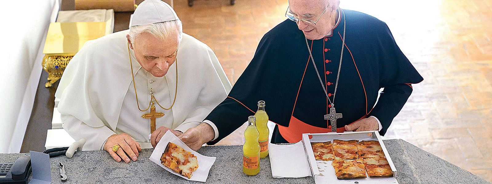 "Two popes". Dois amigos partilham uma pizza