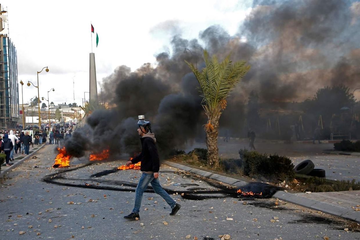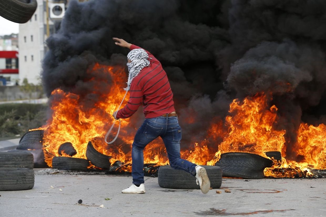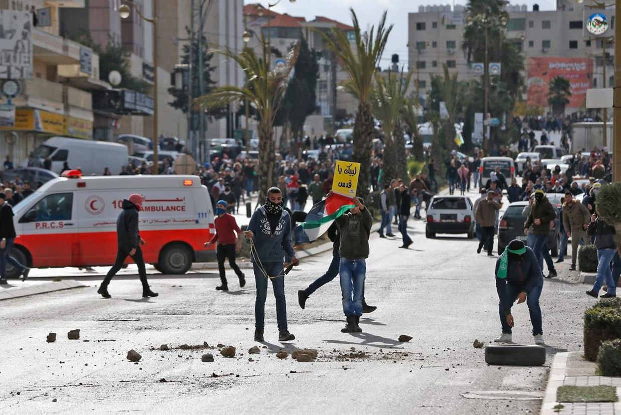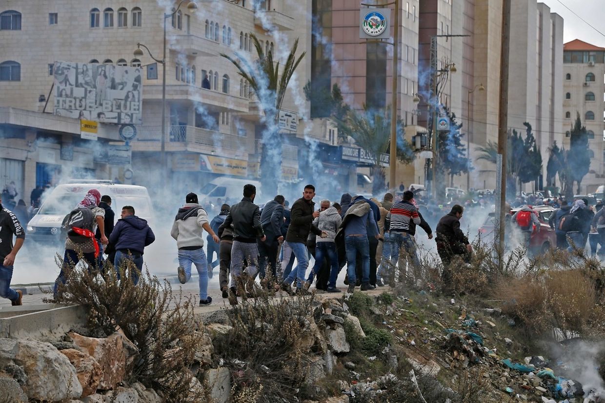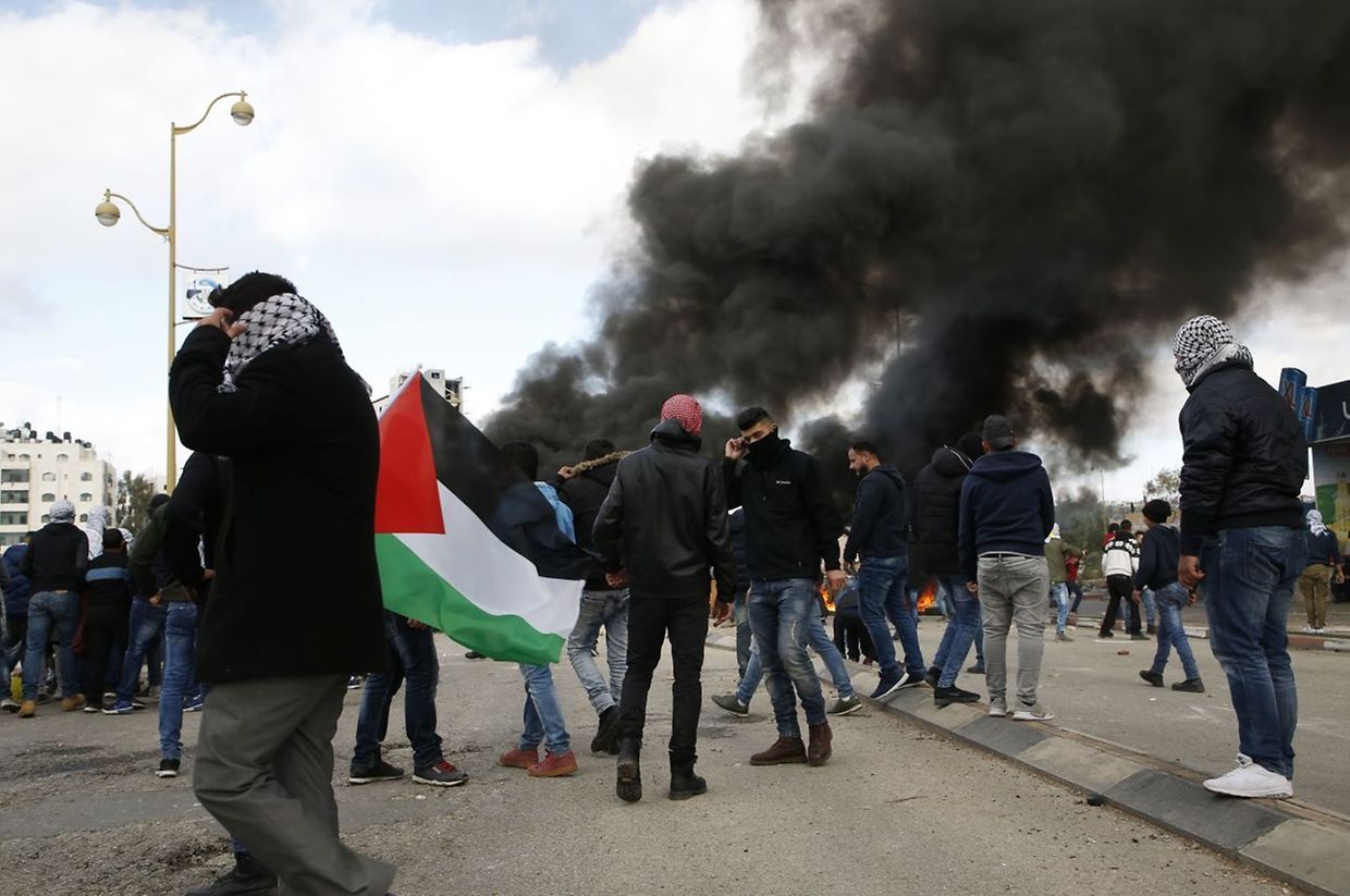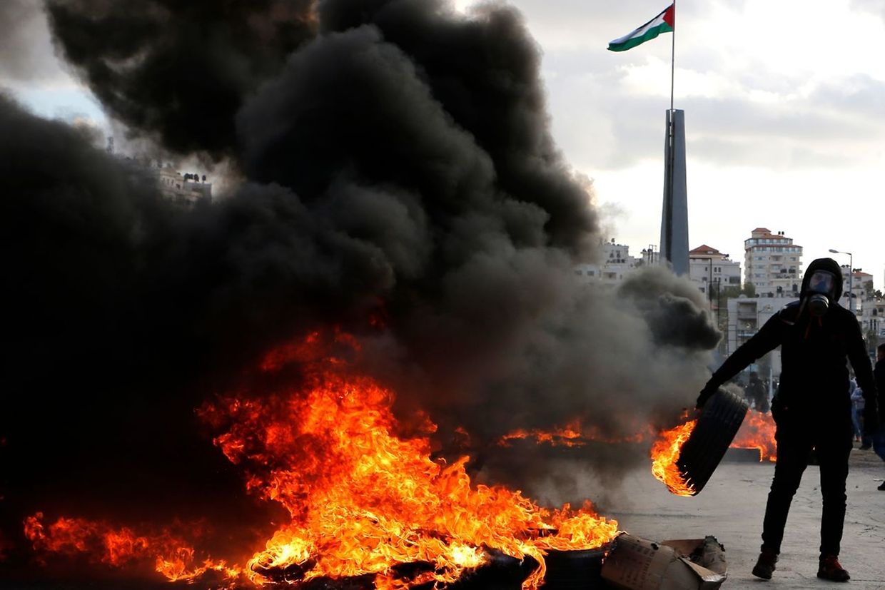 Na cidade bíblica de Belém, as tropas dispararam canhões de água e lançaram granadas de gás lacrimogéneo para dispersar uma manifestação e em Ramallah, sede do governo palestiniano, manifestantes incendiaram dezenas de pneus, provocando uma espessa nuvem de fumo negro sobre a cidade.