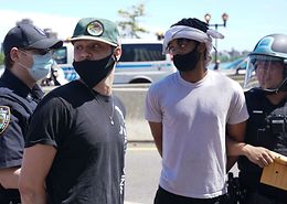 A conferência de imprensa de Cuomo aconteceu pouco depois de o comissário da Polícia de Nova Iorque Dermot Shea ter defendido as ações dos agentes e ter afirmado que a polícia tinha sido atacada em várias ocasiões pelos manifestantes, que, segundo disse, atiraram tijolos e "cocktails" Molotov, um dos quais atingiu uma carrinha da polícia com agentes no interior.
